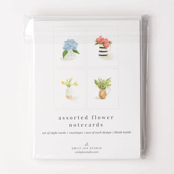 Send sweet greetings to your loved ones. The assorted set of flower notecards are blank on the inside with charming watercolor illustrations of a hydrangea, tulips, peonies and lily of the valley on the front. They bring a touch of whimsical beauty to your thank you notes, housewarming gifts, get-well wishes, and more.